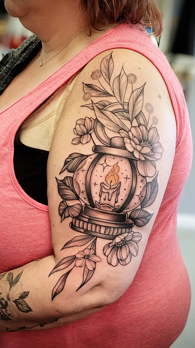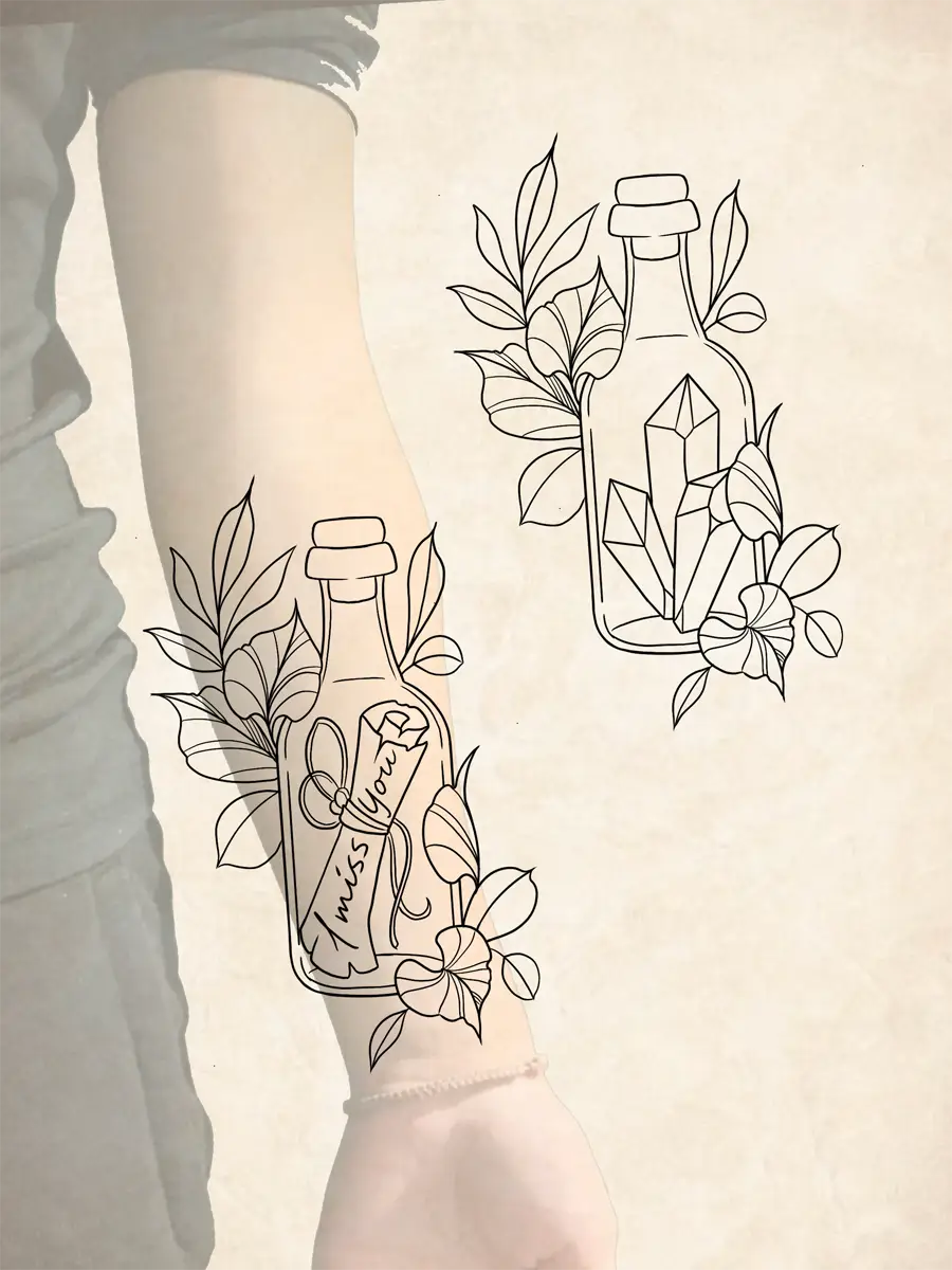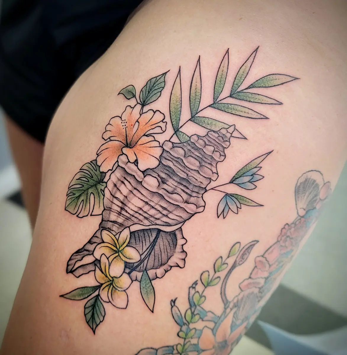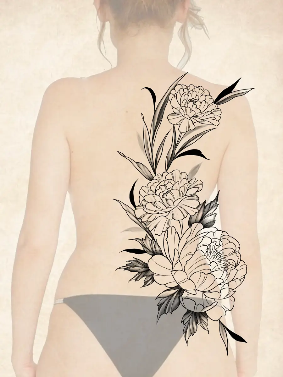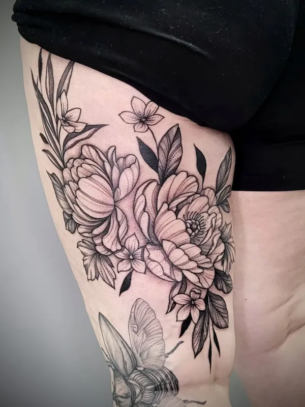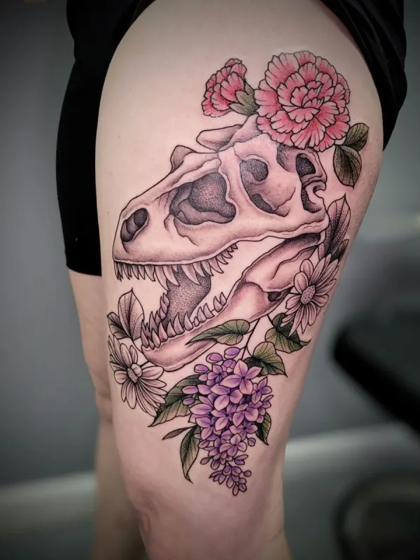 Sunshine’s focus is on large-scale floral/botanicals in her signature wispy style, as well as nerdy/gamer and witchy/fantasy projects, which she often incorporates into her floral pieces.
