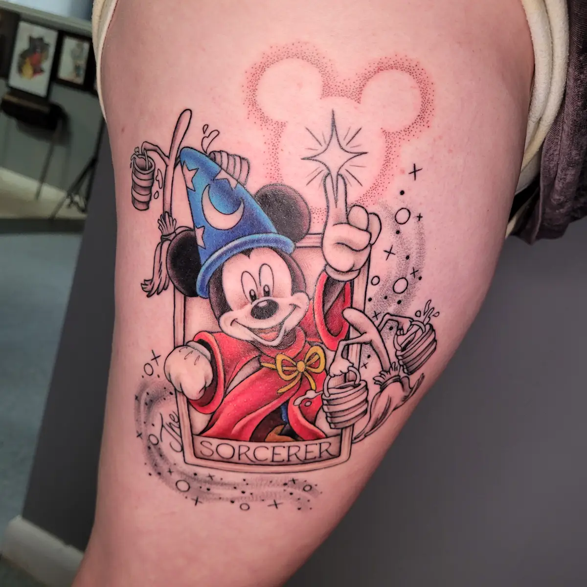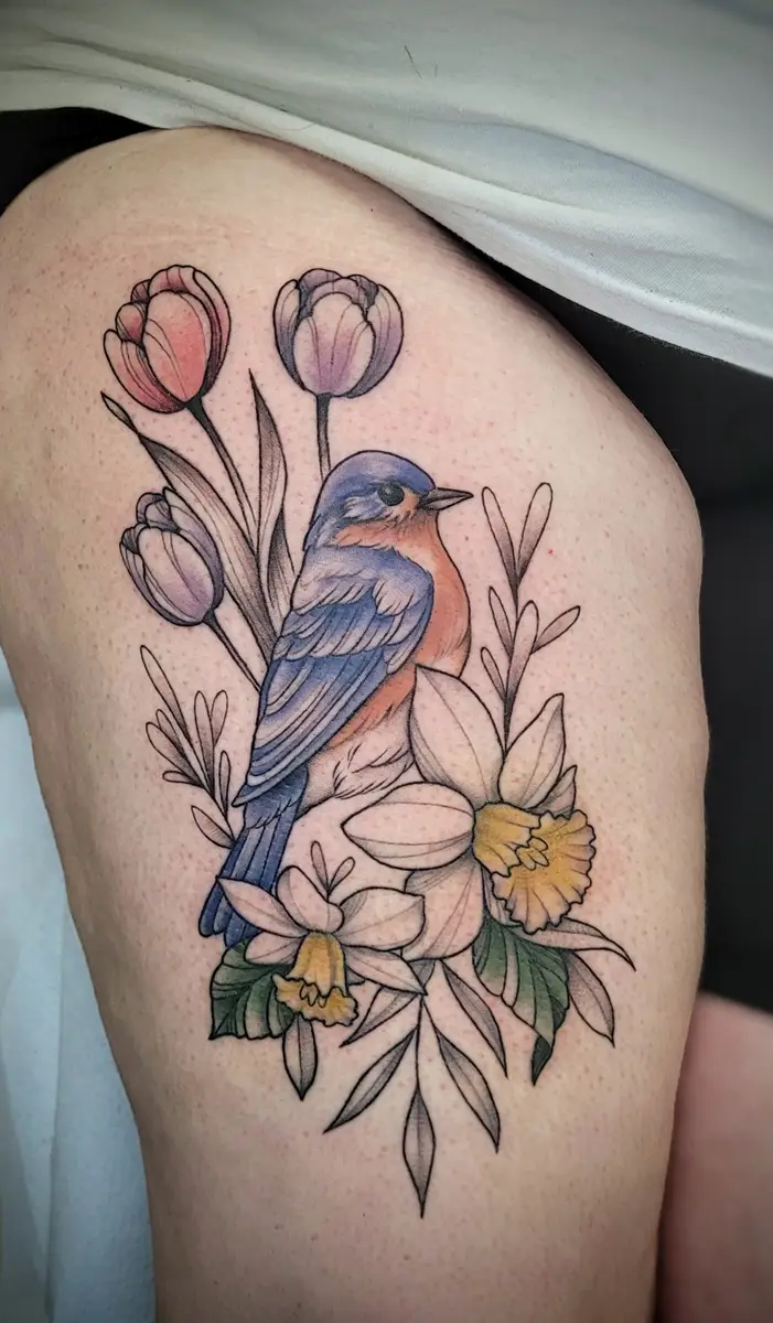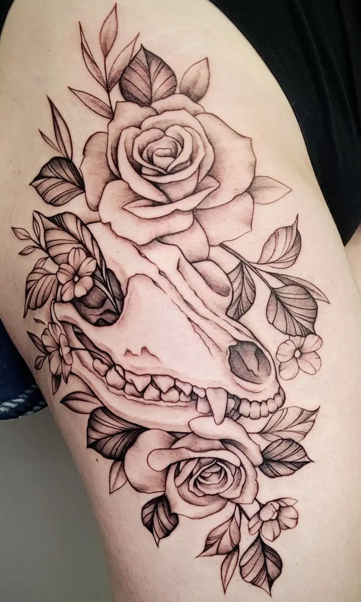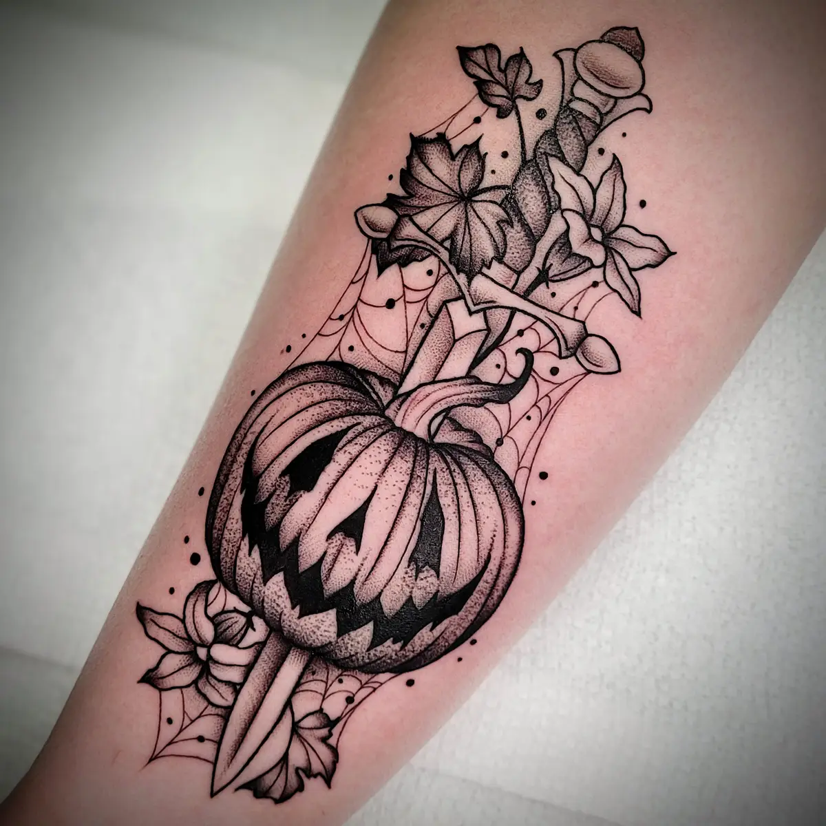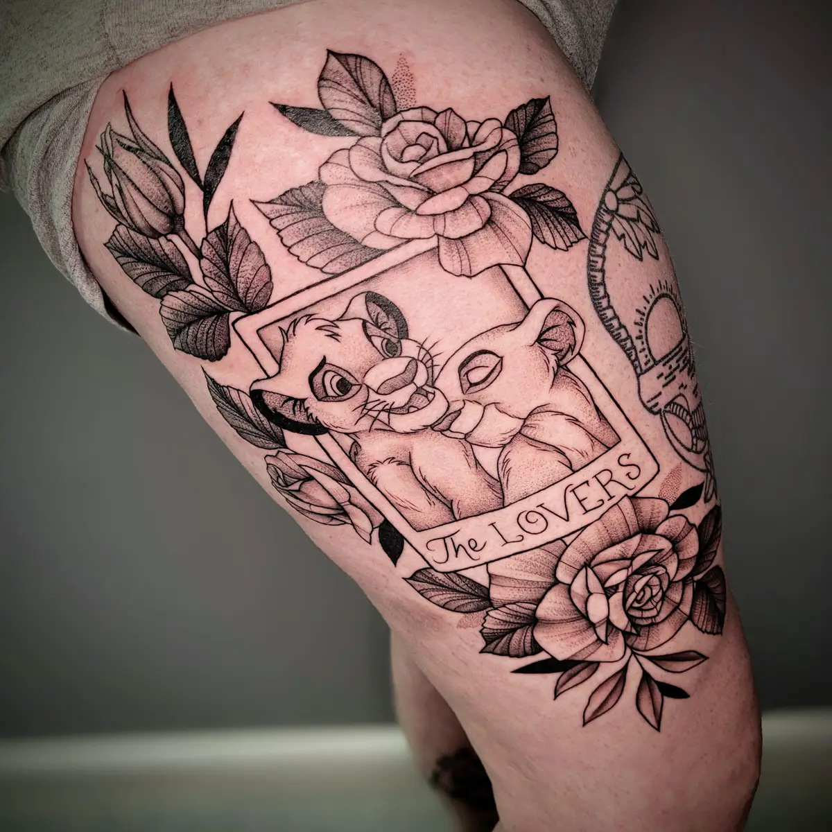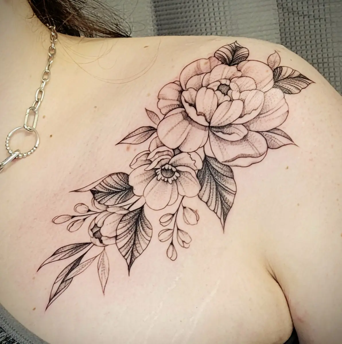 Sunshine’s focus is on large-scale floral/botanicals in her signature wispy style, as well as nerdy/gamer and witchy/fantasy projects, which she often incorporates into her floral pieces.